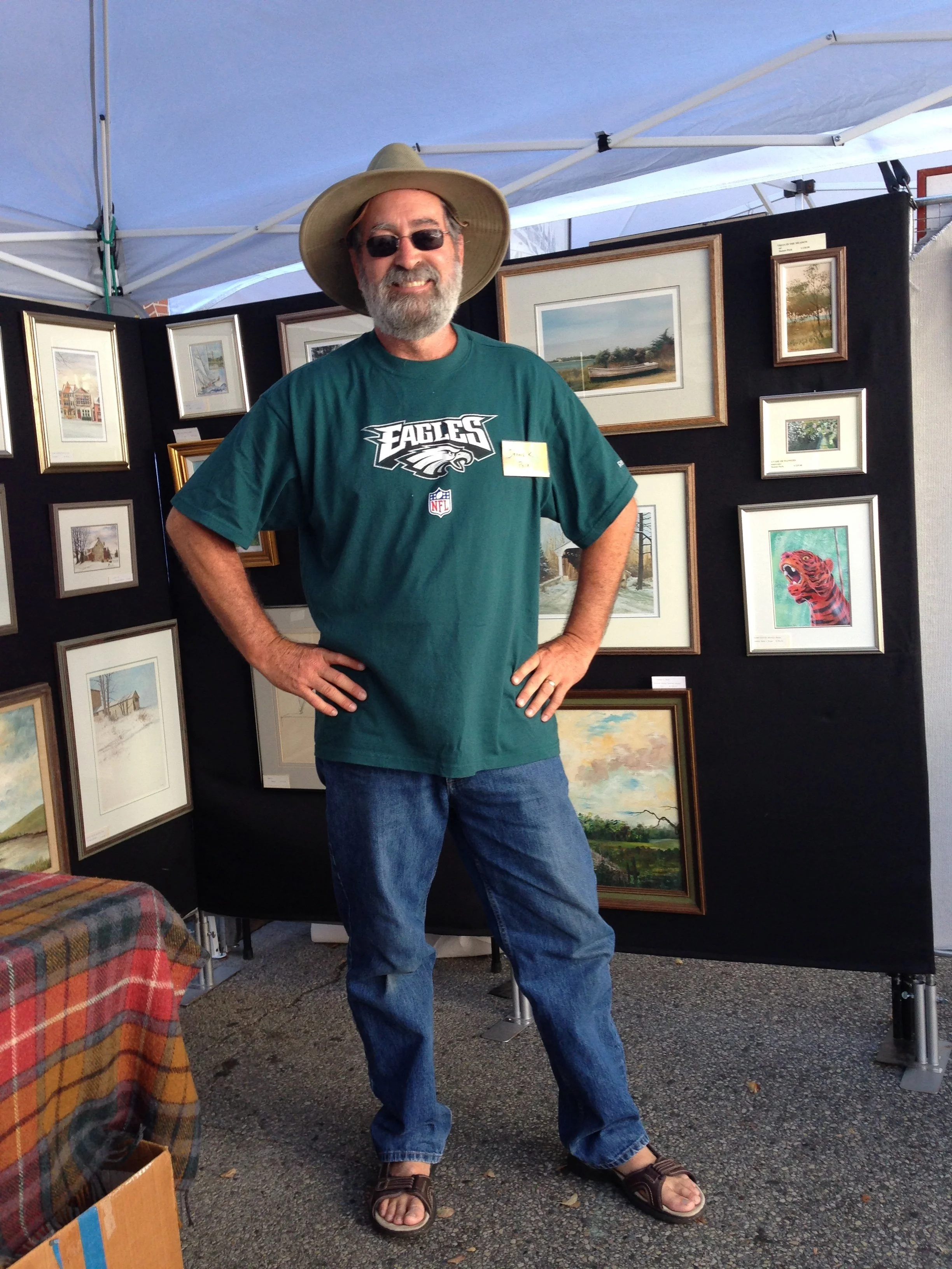 Denny’s success in the arts has brought him many opportunities, one of which includes a commissioned painting for the 1985 class of Unionville High School. In 1987, he designed the cover for the Chadds Ford Gallery miniature show. In 1988, Denny was commissioned by the 7th North American Mushroom Conference committee to do a painting for their celebrated New Orleans conference. He painted Birmingham Octagonal Schoolhouse for the Kennett Area Senior Center, which also included a print. Denny was commissioned by the Lan-Chester Christian School to do a painting of Caln Hexagonal Schoolhouse. Limited edition signed and numbered prints are available of this painting. The money raised went to benefit the school. In 1995, he was the featured artist for the ARC of Chester County. Park was commissioned to do the “Little Bits of West Chester” in 1999, Three street scenes of West Chester, the first 200 years. Dennis was also honored to be the featured artist at the Unionville High School Art Gala.